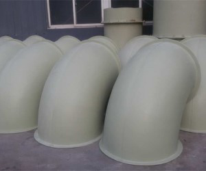 在玻璃鋼型材分類中介紹過玻璃鋼材質的彎頭(型號規格相對較小),其采用的是模壓制作工藝,在玻璃鋼護欄、樓梯、圍欄中使用較多。而在廢氣處理工程中使用的玻璃鋼手糊彎頭,其主要特點之一就是體型較大。采用一般的模壓或纏繞工藝在生產技術上面消耗過大,而采用手糊制作工藝則能夠完美的解決這個問題。