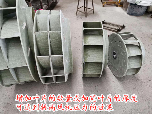 加大葉片的寬度、厚度以及調(diào)整葉片的弧度都可不同程度的提高風(fēng)壓,如本公司生產(chǎn)的玻璃鋼高壓風(fēng)機(jī)就是通過(guò)噶便葉輪的規(guī)格來(lái)達(dá)到使用標(biāo)準(zhǔn)。