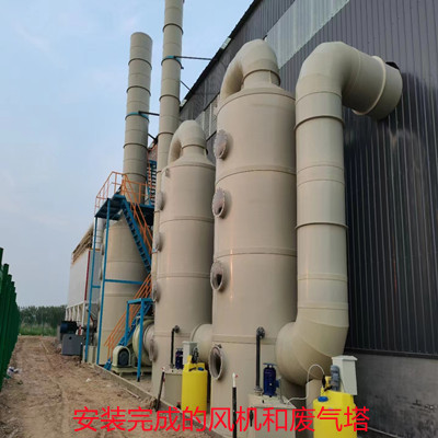 a、根據廢氣處理方案先劃定風機的安裝地點,然后使用叉車或吊車將風機搬運至制定的安裝位置;
